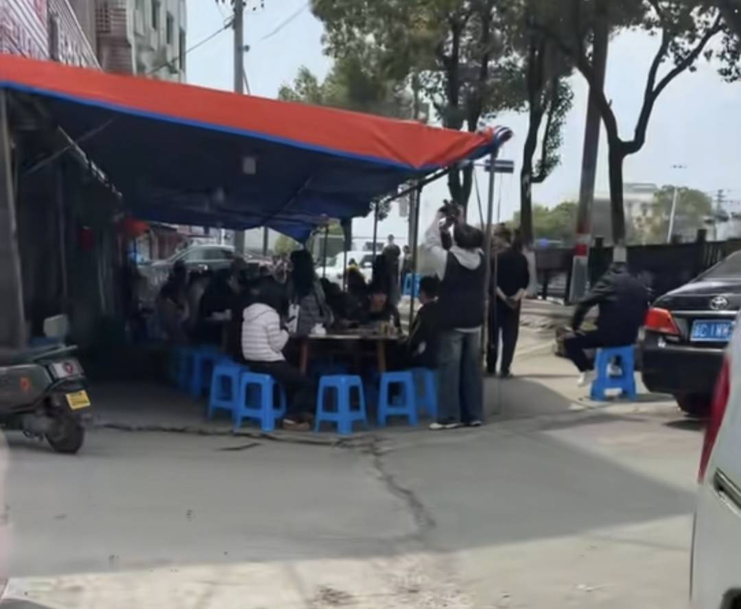 小炒店門口搭起棚子迎接食客。網友“鄧走走”視頻截圖