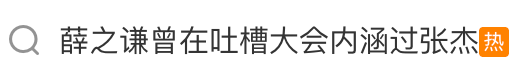 據悉,近日薛之謙2017年參與錄制的《吐槽大會》片段再度在網上熱傳,薛之謙在節目中稱“一沒提前解約,二沒靠紅人女友輔佐、發片”,引發爭議?!把χt曾在吐槽大會內涵過張杰”話題詞條沖上微博熱搜。