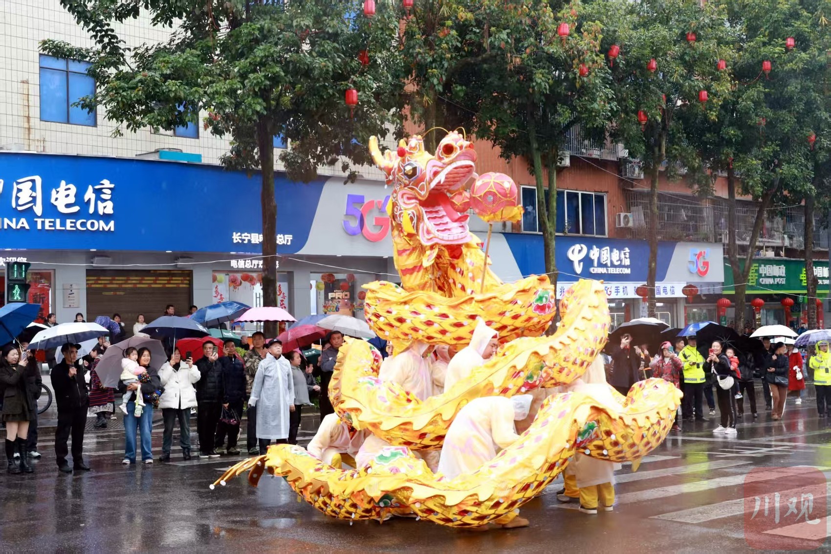 “一點左眼金光閃,風調雨順保豐年;二點右眼亮晶晶,國泰民安萬事興;三點天庭通大道,美麗長寧啟新程……”3月3日,農歷正月十五,伴隨著一聲聲洪亮又喜慶的喝彩,宜賓市長寧縣2026年元宵節民俗大巡游熱鬧拉開序幕。花船輕搖、蓮槍脆響,活靈活現的“牛牛燈”等輪番登場,一支支民俗隊伍笑著向路邊的市民和游客拱手拜年,整個竹鄉大地瞬間被濃濃的節日氛圍“點燃”。