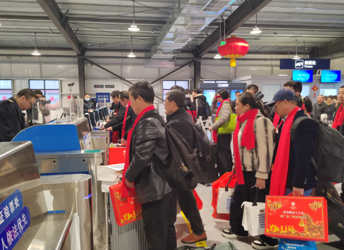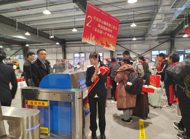3月2日,由樂(lè)山市人力資源和社會(huì)保障局舉辦的“人社暖心,工友同行”樂(lè)山籍農(nóng)民工免費(fèi)返崗專列發(fā)車(chē)儀式,在高鐵樂(lè)山站舉行,來(lái)自市中區(qū)、井研縣、犍為縣的140名樂(lè)山籍務(wù)工人員統(tǒng)一搭乘D1809次列車(chē),從樂(lè)山站出發(fā),直達(dá)廣州南站,踏上返崗復(fù)工之路。