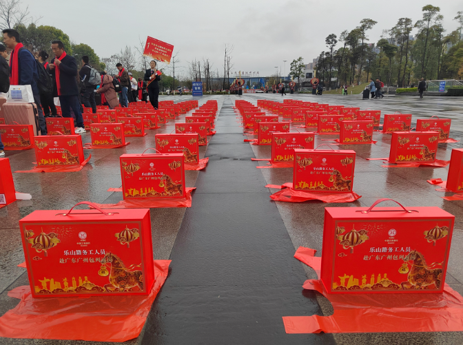 樂(lè)山為乘坐專列的農(nóng)民工精心準(zhǔn)備了返崗禮包