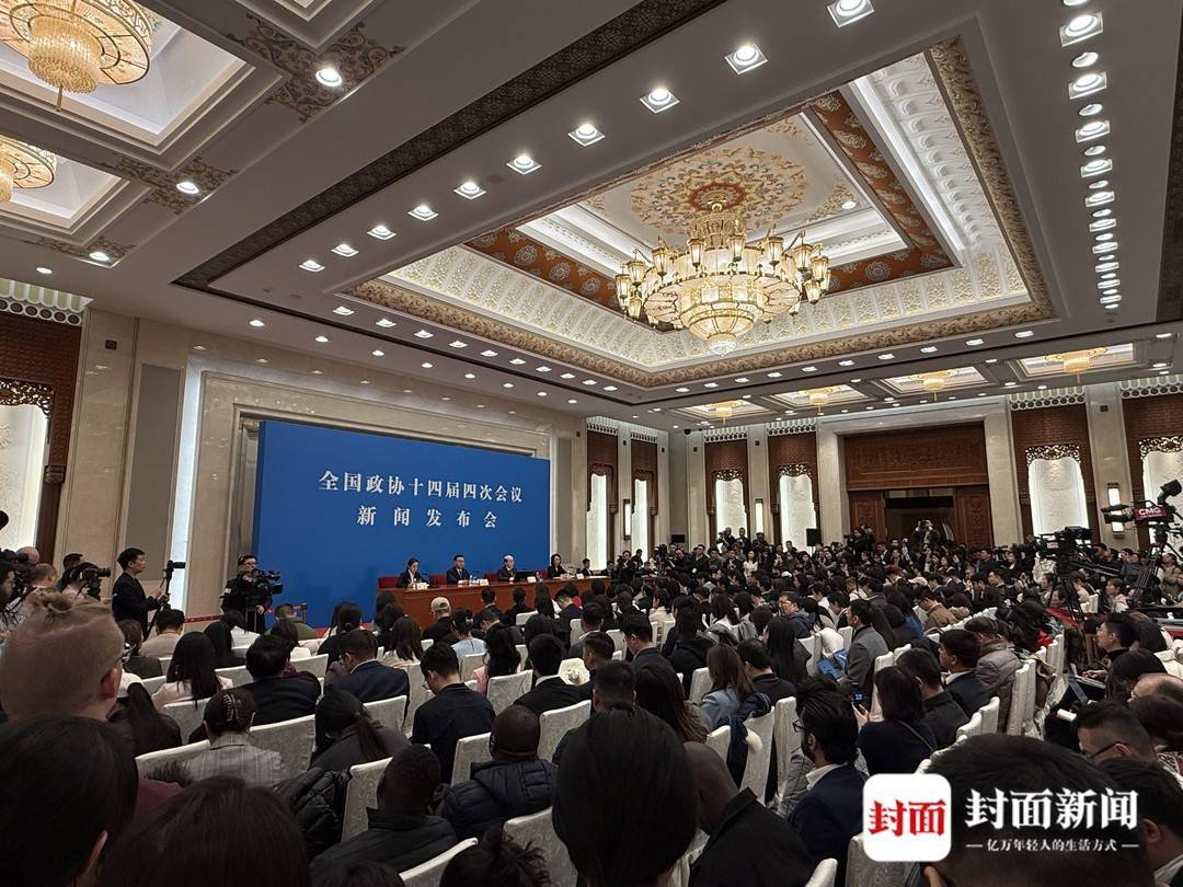 當(dāng)日下午,全國(guó)政協(xié)十四屆四次會(huì)議舉行首場(chǎng)新聞發(fā)布會(huì)。作為每年全國(guó)兩會(huì)的首場(chǎng)新聞發(fā)布活動(dòng),每年政協(xié)首場(chǎng)新聞發(fā)布會(huì)都備受關(guān)注。封面新聞?dòng)浾咴诂F(xiàn)場(chǎng)注意到,下午兩點(diǎn),人民大會(huì)堂東門(mén)外已排起數(shù)百米的長(zhǎng)隊(duì),新聞發(fā)布廳內(nèi)一座難求。
