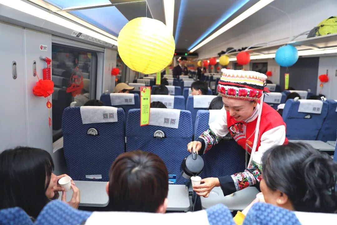 各地鐵路部門精心組織元宵節旅客運輸工作,加大中短途運力投放,舉辦豐富多彩的站車文化活動,提升旅客出行體驗,營造喜慶祥和的節日氛圍。沈陽局集團公司多趟列車舉辦元宵主題聯歡活動,開展歌舞表演、猜燈謎、品元宵、手工花燈制作及福字拓印等活動。太原局集團公司在太原開往上海的Z198次、太原開往深圳東的K237次等列車上開展猜燈謎活動。呼和浩特局集團公司在D1015次列車上開展“元宵映歸途,旅途暖相隨”主題活動,為旅客介紹元宵節傳統習俗,開展猜燈謎、彩泥捏元宵、文藝表演等活動。鄭州局集團公司商丘站舉辦“文明春運福滿元宵”主題活動,邀請旅客猜燈謎,免費送上湯圓與祝福卡片。武漢局集團公司部分車站增設學生票專窗,開辟學生專用進站安檢通道,組織“小桔燈”志愿者為有需要的旅客提供行李搬運等便民服務。西安局集團公司西安站開展“喜樂元宵·智慧伴行”元宵主題活動,將智能機器人與傳統元宵民俗巧妙融合,開展文明出行趣味互動,讓南來北往的旅客沉浸式感受節日喜慶、科技魅力與文明新風。南昌局集團公司九江站開展猜燈謎鬧元宵活動,吸引廣大旅客互動參與;鷹潭站為候車旅客送上湯圓,讓旅客感受節日溫暖。南寧局集團公司在南寧東開往北京西的G310次列車上開展“喜樂元宵會”賞花燈、猜燈謎、品元宵等傳統民俗活動。昆明局集團公司組織青年志愿服務隊在車站重點處所加強引導,開辟學生和務工團體綠色檢票通道,提升通行效率。蘭州局集團公司在隴西站及7504/7503次“富民號”公益性“慢火車”上舉辦“文化進站?嬉鬧元宵?文明出行”活動,在節日氛圍中傳遞文明出行理念。烏魯木齊局集團公司在烏魯木齊開往上海的Z42次旅客列車上,為旅客送去熱氣騰騰的湯圓,共度元宵佳節。青藏集團公司在拉林鐵路、拉日鐵路、青藏鐵路等線路的部分列車上,精心組織猜燈謎、有獎互動、歌舞表演等文藝文化活動,讓旅客在列車上度過一個別樣的元宵節。