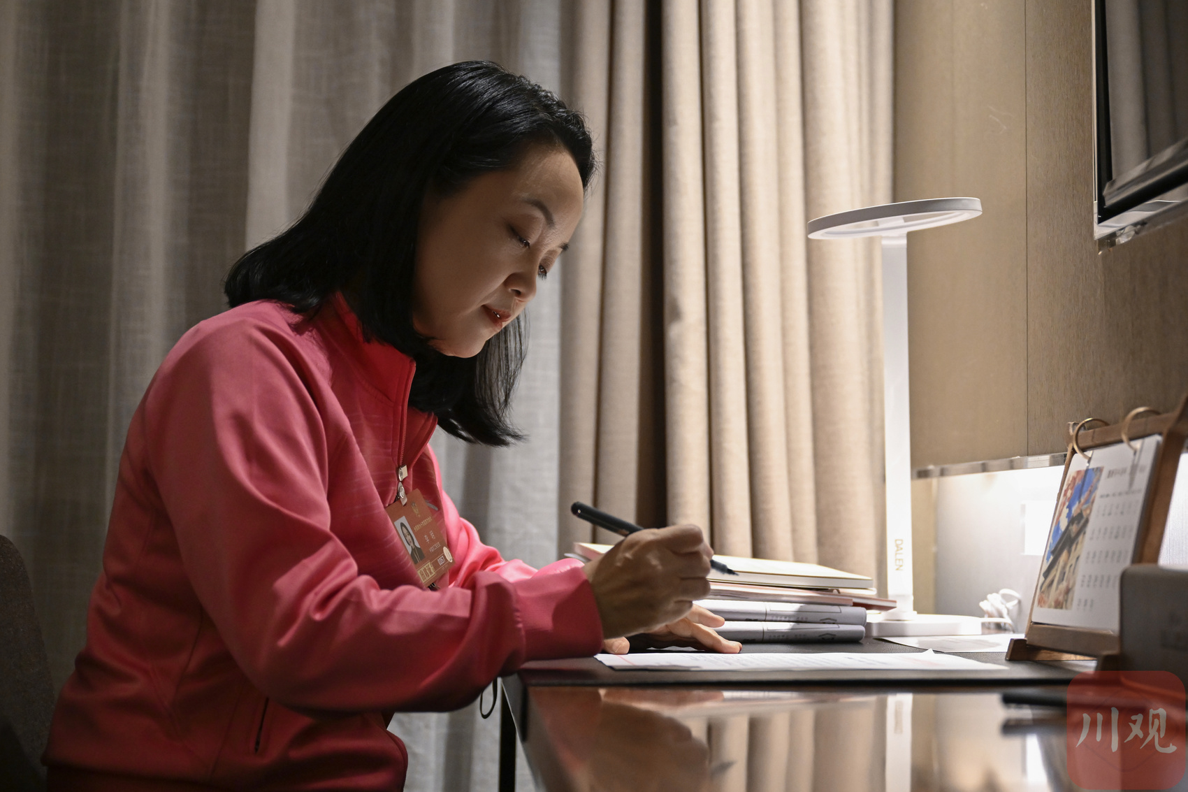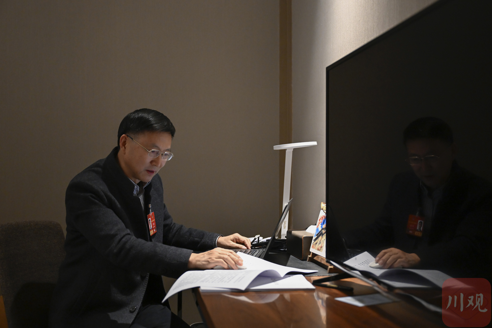 四川省全國(guó)政協(xié)委員李明在駐地酒店認(rèn)真準(zhǔn)備會(huì)議材料,完善提案建議,為上會(huì)作準(zhǔn)備。