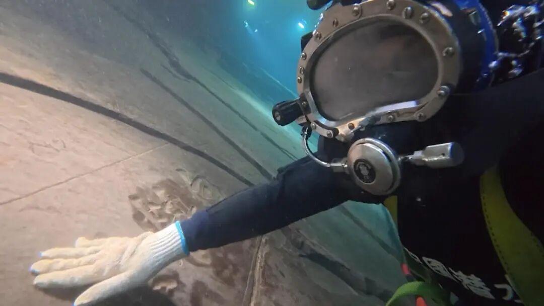 不過,由于長(zhǎng)時(shí)間浸泡在水中,題刻容易被生物膜覆蓋造成腐蝕。每隔一段時(shí)間,博物館就會(huì)組織潛水員進(jìn)入水下進(jìn)行清理。潛水員是如何工作的?