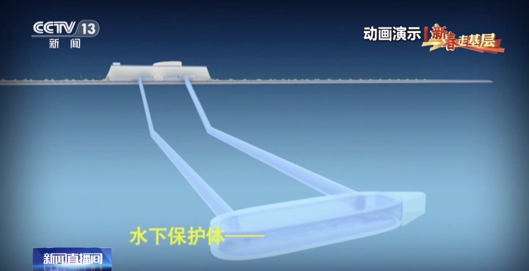 水下保護(hù)罩體像一個(gè)橫放在江底的瓶子,而直徑兩米多的球狀減壓艙是唯一的入口,供潛水員進(jìn)出保護(hù)體,清潔、檢修設(shè)備。