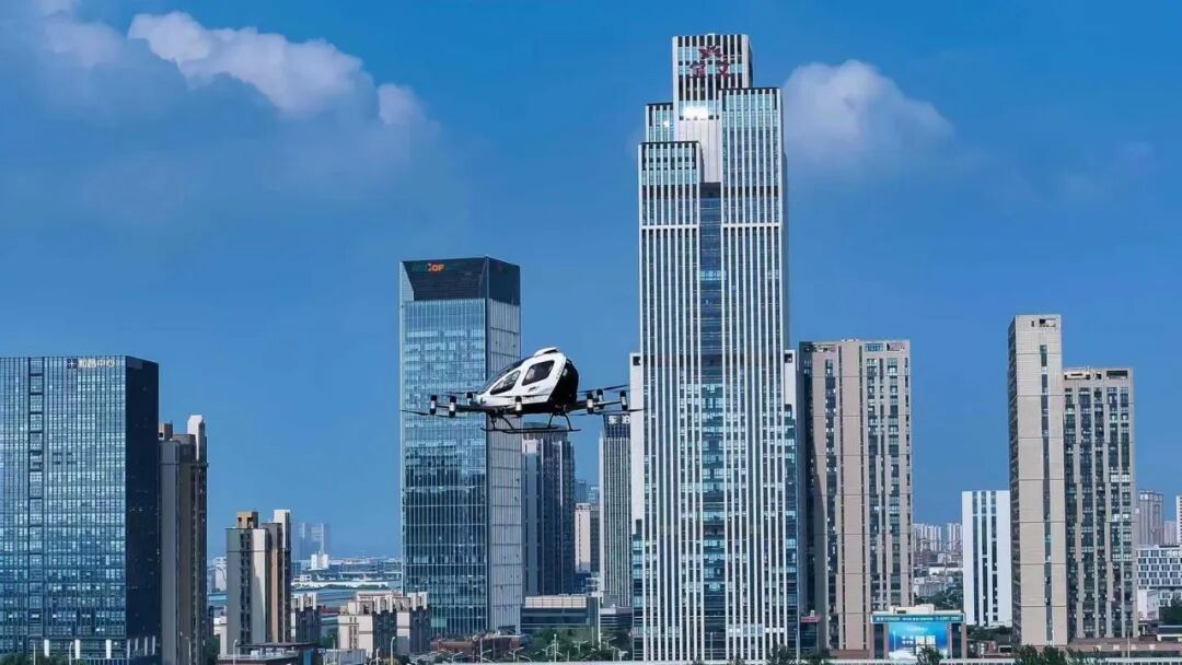 合翼航空運(yùn)營的EH216S無人駕駛載人航空器在合肥上空飛行。