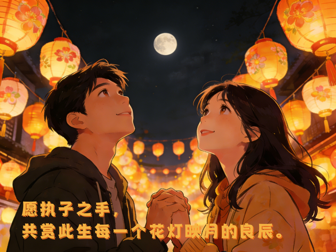 元宵湯圓甜糯,不及愛人眼眸里的星光半分。愿執子之手,共賞此生每一個花燈映月的良辰。