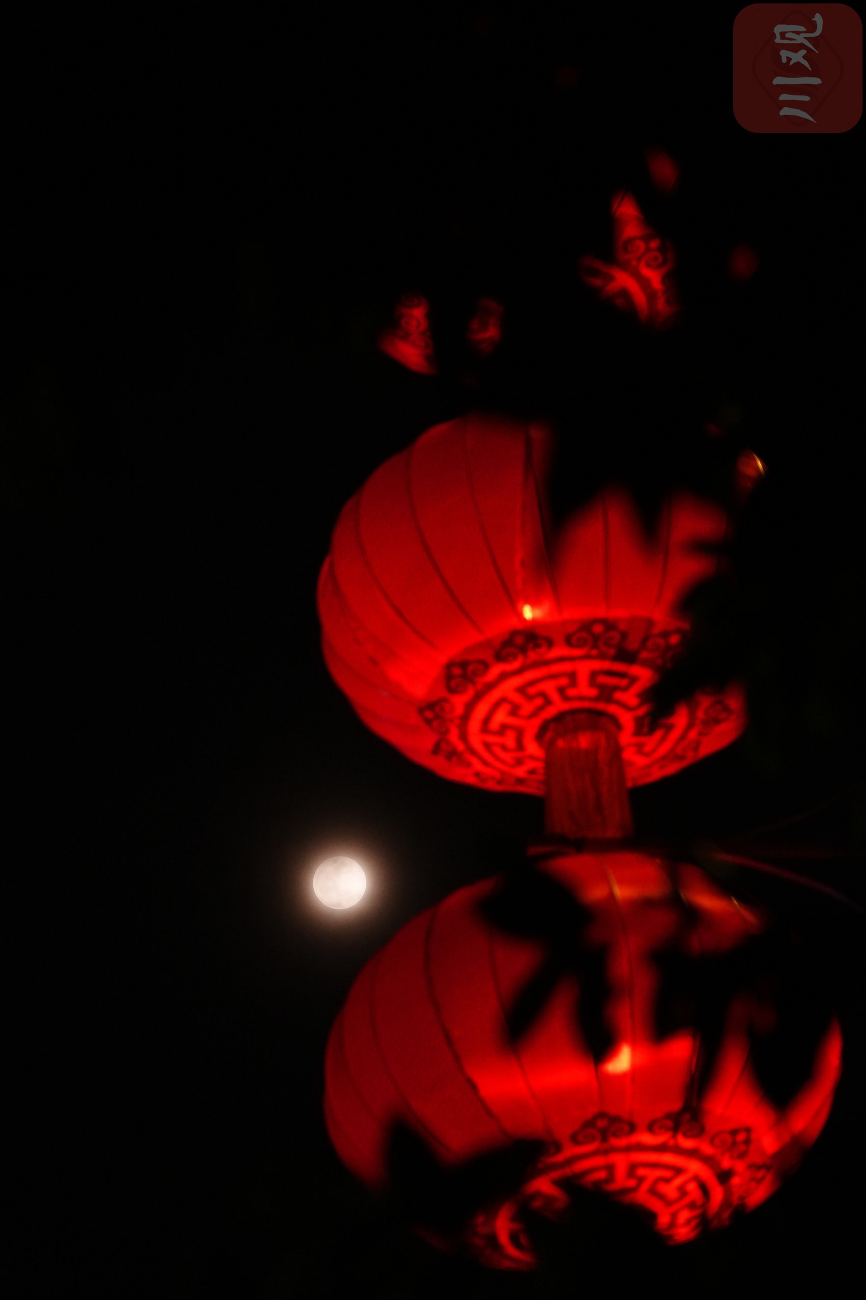 在成都一環(huán)路南三段,定格月全食與紅燈籠同框。C視覺簽約攝影師 李明成