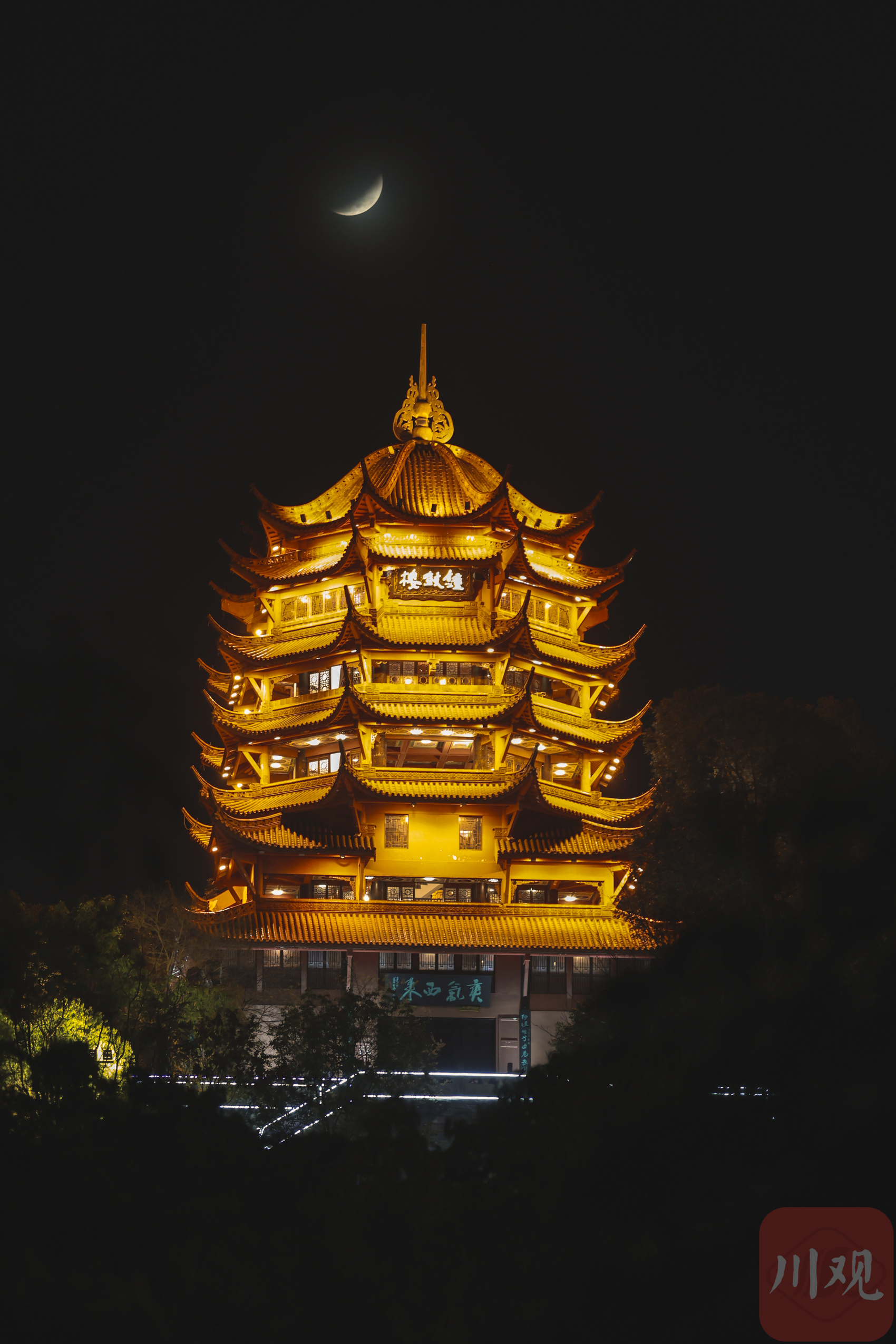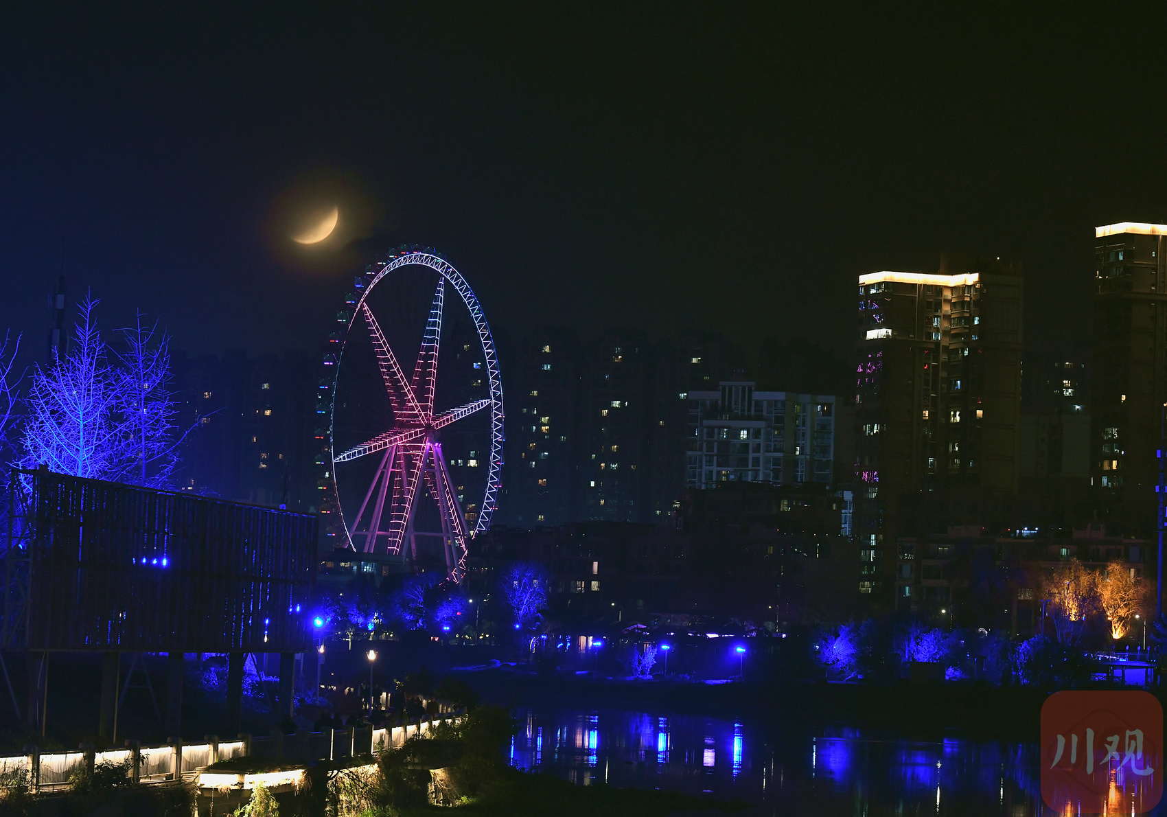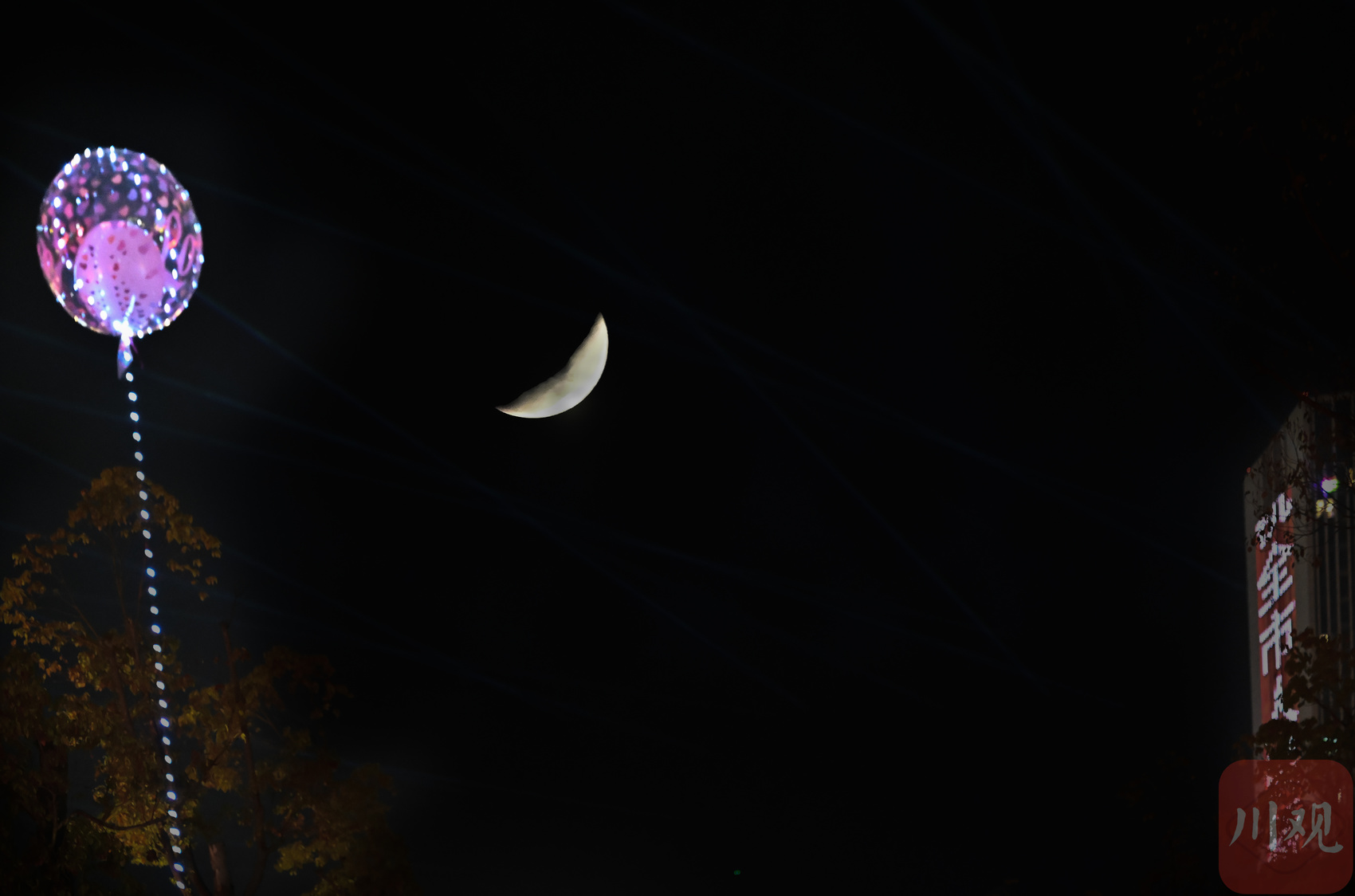 在成都市錦江區(qū),樹影與朦朧月影交織成元宵夜的詩。C視覺簽約攝影師 沈軍