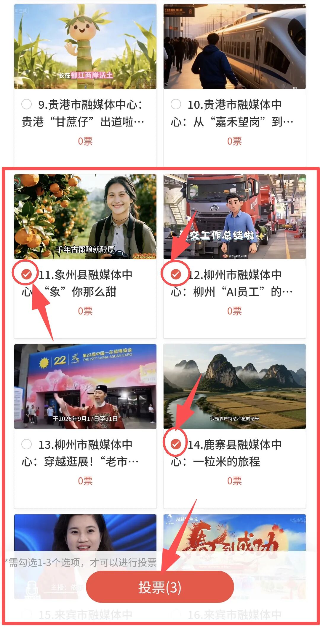 點擊圓圈選擇作品,進行投票,同時可點擊作品封面圖查詢作品詳情