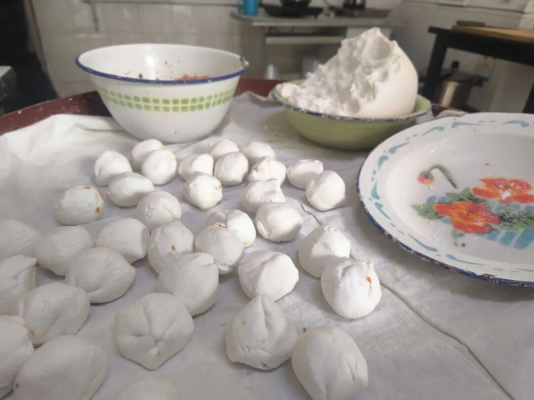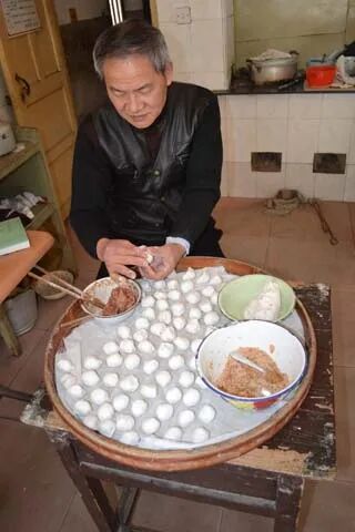 資料圖片:2012年,正在包湯圓的老李?李艷梅/攝