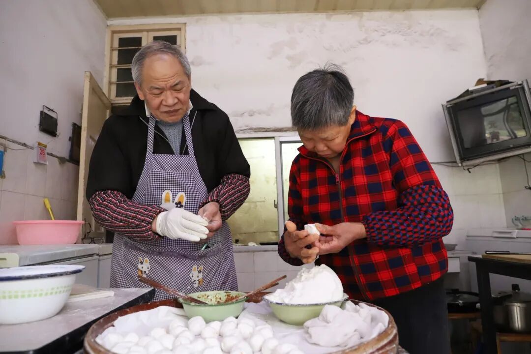 店里的小黑板上,寫著咸甜元宵10元、12元一碗的價(jià)簽,四十多年來(lái),老李始終堅(jiān)持平價(jià),即便物價(jià)上漲,也從未刻意抬高價(jià)格。“做小生意,圖的是實(shí)在,街坊鄰里照顧生意,我們也得對(duì)得起大家。”老伴洪香妹在一旁笑著搭話,手上的活卻沒(méi)停,兩人配合默契,不到十分鐘,一屜元宵便已成型。