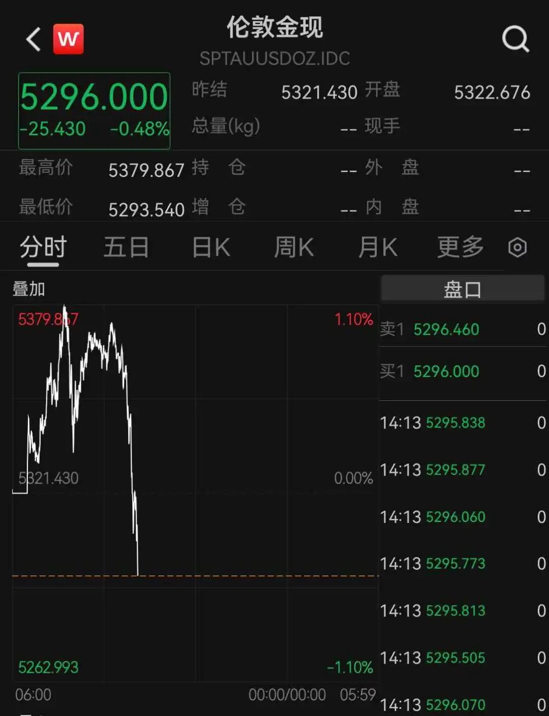 3月3日午后,金銀短線跳水,截至發(fā)稿,現(xiàn)貨黃金失守5300美元/盎司關口,日內(nèi)跌0.48%。