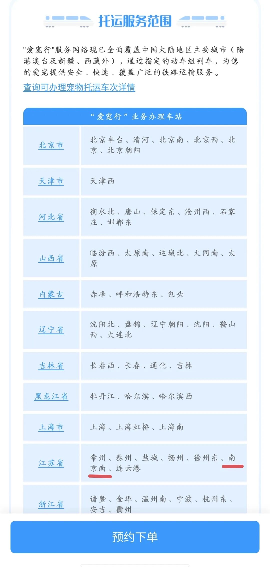 其中,南京南站就在托運服務范圍中。