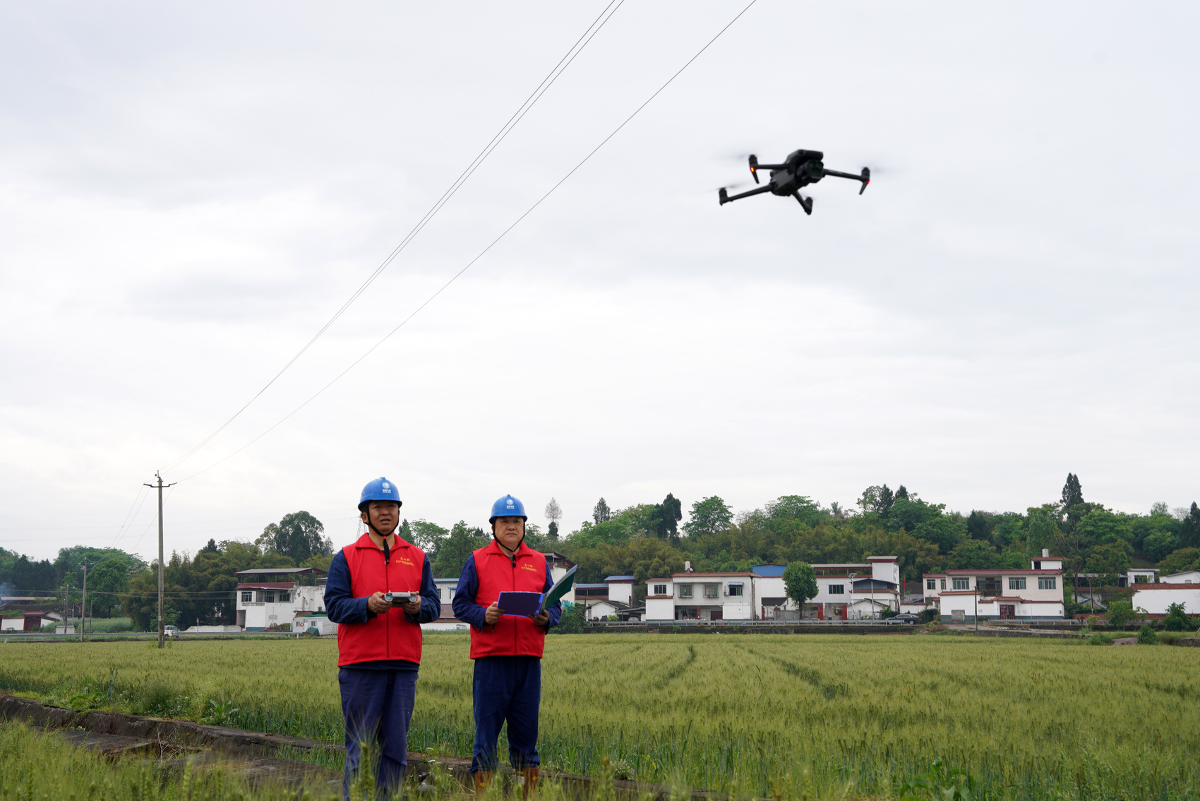 隊員們手持紅外測溫儀,仔細檢查穿越麥田的10千伏線路。他們舉起儀器對準導線接頭、絕緣子與耐張線夾,觀測屏幕上的溫度變化,同時利用無人機進行空中飛巡,與地面人工檢查形成立體巡視網絡。針對巡視中發現的一處拉線松動隱患,隊員們當場進行緊固處理,確保小麥抽穗灌溉期間線路“零缺陷”運行。