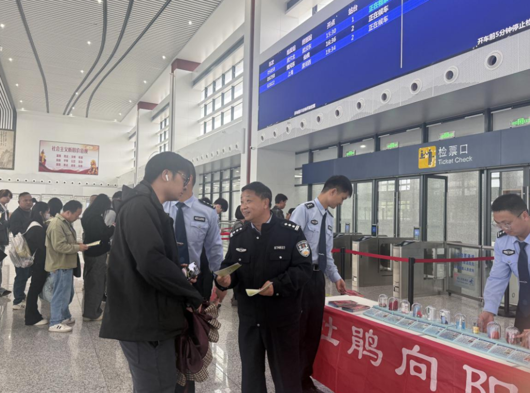 湖北省黃岡市黃州區公安分局禁毒大隊聯合黃岡市強制隔離戒毒所、禹王派出所、禹王街道社區戒毒康復中心,走進黃岡西站,面向站內候車乘客及工作人員,開展主題鮮明、內容豐富的國家安全和禁毒知識宣講活動。