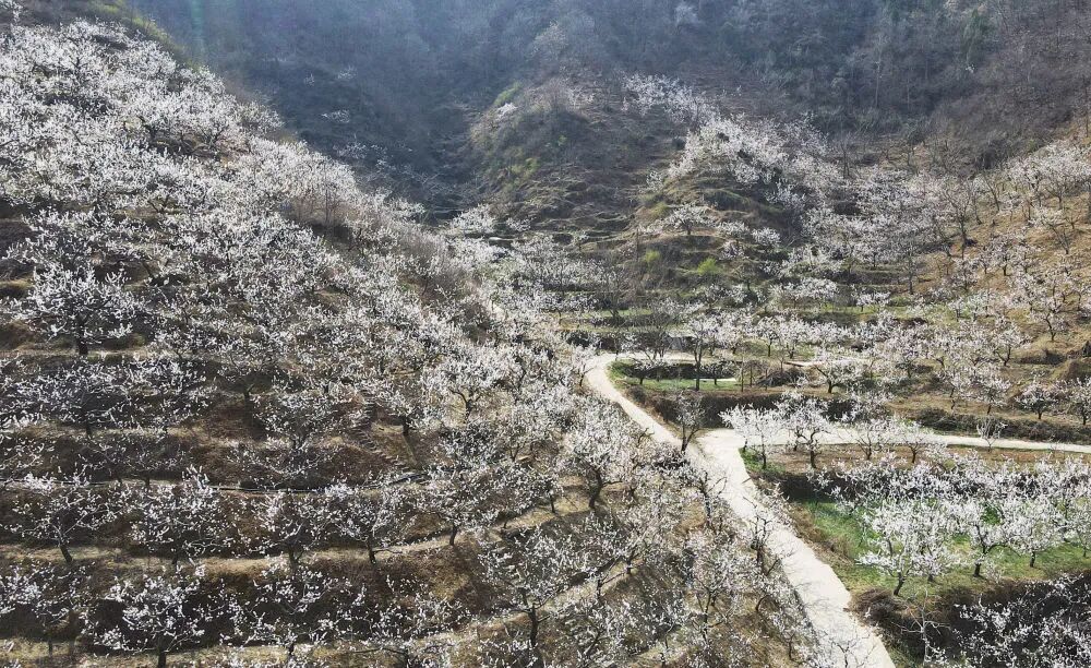 在北京市平谷區南獨樂河鎮北寨村拍攝的杏花。新華社記者任超攝