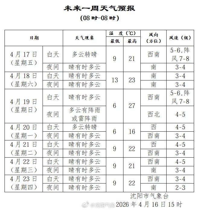 預計17日8時到20時,沈陽市和平區、沈河區、鐵西區、皇姑區、大東區、于洪區,沈撫示范區西南風5到6級,陣風7到8級,請注意防范。