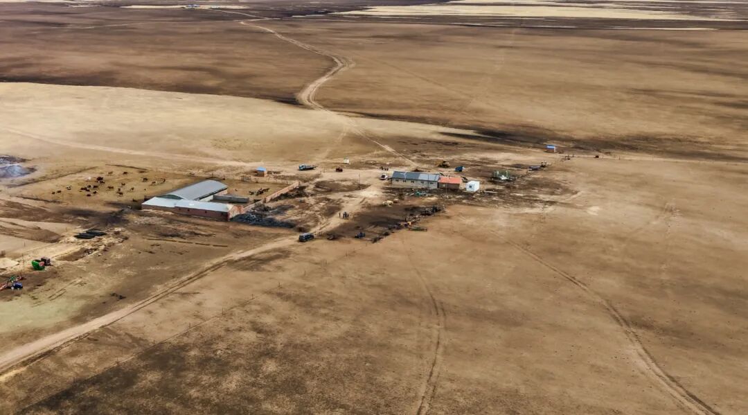 16日中午12時許,西烏珠穆沁旗吉仁高勒蘇木烏蘭淖爾嘎查的牧民張樹發正在整理過火后的庭院。在此次火情中,張樹發以及周邊多戶牧民在大火中均受到不同程度損失,其中他的損失最為嚴重:大火從他家的草場蔓延而過,4000畝草場全部過火;260捆共計80余噸的牧草被燒毀;32只羊受損,其中包括多只剛出生的春羔。