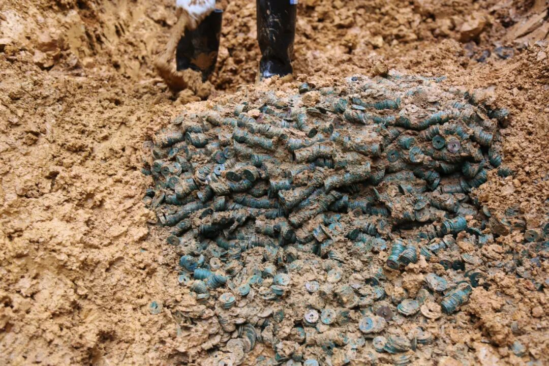 4月9日晚,湖南邵陽武岡市樂洋西路污水管網施工過程中發現大量古錢幣。據武岡市文物局介紹,經初步清理,這批古錢幣經目測預估有3噸(含水和泥土),目前能辨認出的年代最早是唐代開元通寶,最晚的是紹定通寶。這是邵陽地區首次發現的大規模古銅錢窖藏。