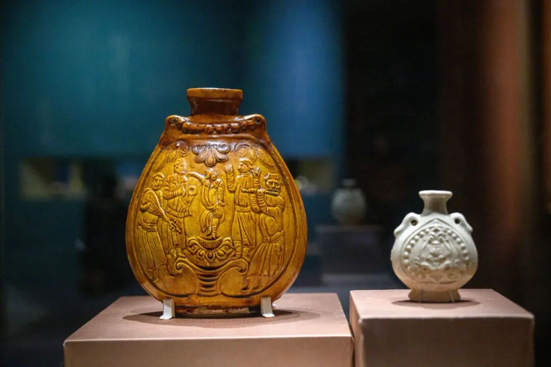 來自天津博物館與國博館藏的兩件白釉龍柄傳瓶此次一并展出。一件傳世文物、一件出土文物,補全了人們對這種器物功用的認識。對于文博愛好者來說,這亦是一次難得的觀賞機會。