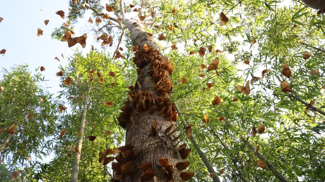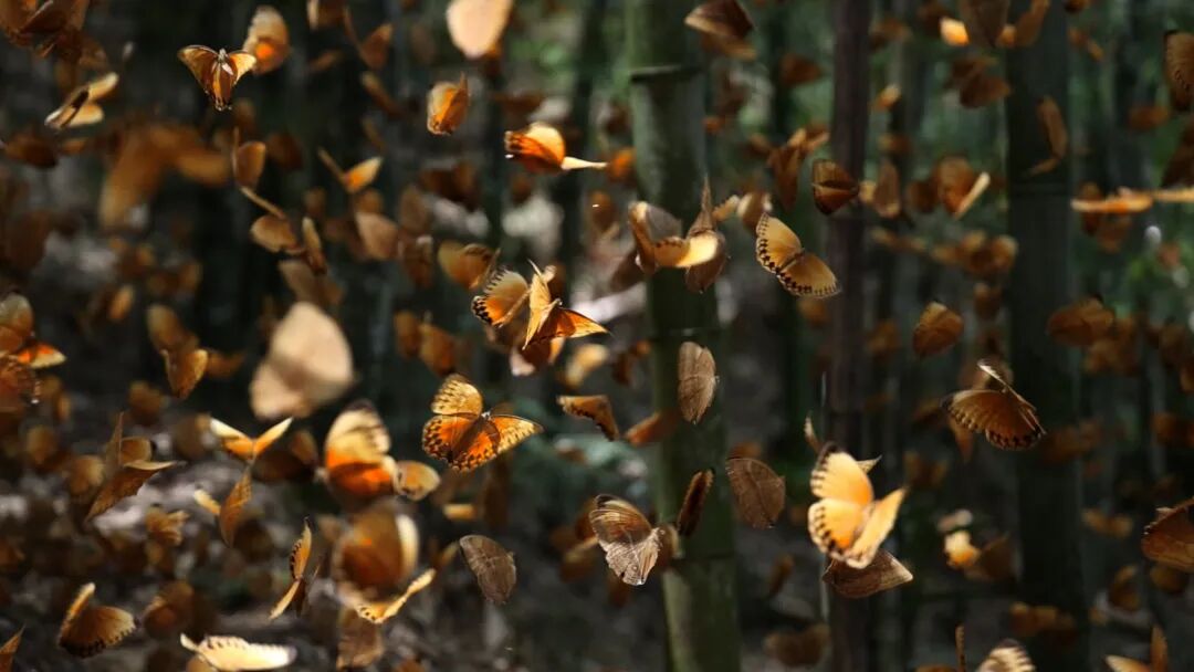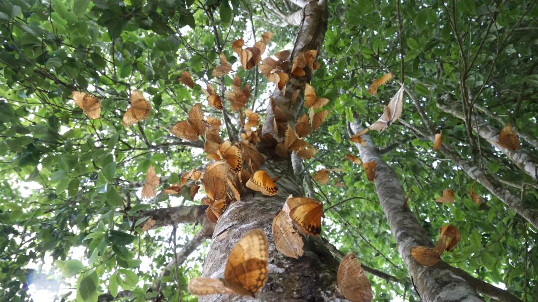 每年5至6月,蝴蝶谷內(nèi)的箭環(huán)蝶幼蟲(chóng)會(huì)在短時(shí)間內(nèi)集中羽化成蝶,它們?cè)谏搅珠g、小溪旁、村落中大量聚集,翩翩起舞、穿梭嬉戲,形成“漫天蝶舞”的獨(dú)特生態(tài)景觀,吸引著無(wú)數(shù)游客慕名而來(lái)。