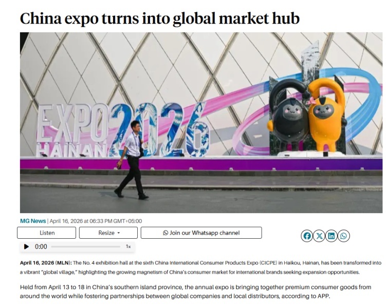 正在中國(guó)舉行的第六屆中國(guó)國(guó)際消費(fèi)品博覽會(huì)持續(xù)引發(fā)多家外媒廣泛關(guān)注。巴基斯坦媒體“Mettis Global”網(wǎng)站刊文稱,本屆消博會(huì)匯聚了來(lái)自全球的優(yōu)質(zhì)消費(fèi)品,同時(shí)促進(jìn)了國(guó)際企業(yè)與本土經(jīng)銷商之間的合作伙伴關(guān)系。尤其是4號(hào)展館(全球特色消費(fèi)展區(qū))已變身為一個(gè)充滿活力的“全球村”,凸顯出中國(guó)消費(fèi)市場(chǎng)對(duì)尋求擴(kuò)張機(jī)遇的國(guó)際品牌日益增強(qiáng)的吸引力。