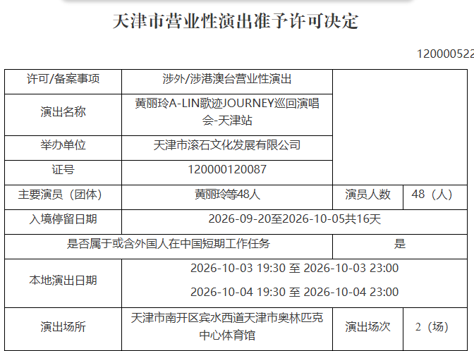 黃麗玲A-LIN歌跡JOURNEY巡回演唱會天津站