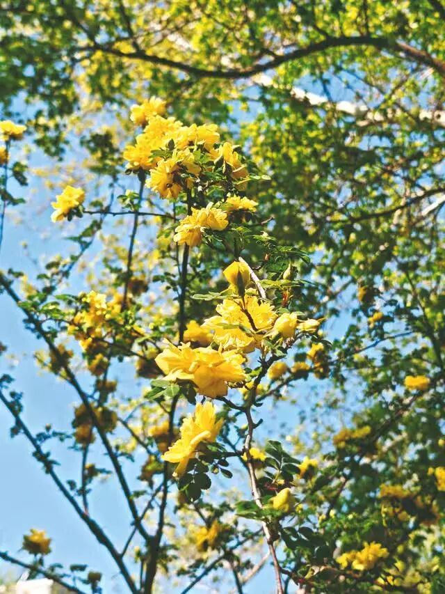 時下,石家莊多個公園內的黃刺玫如期盛放,金黃花朵綴滿枝頭,與綠樹相映成趣。春風拂過,花香四溢,成為一道亮麗風景線。