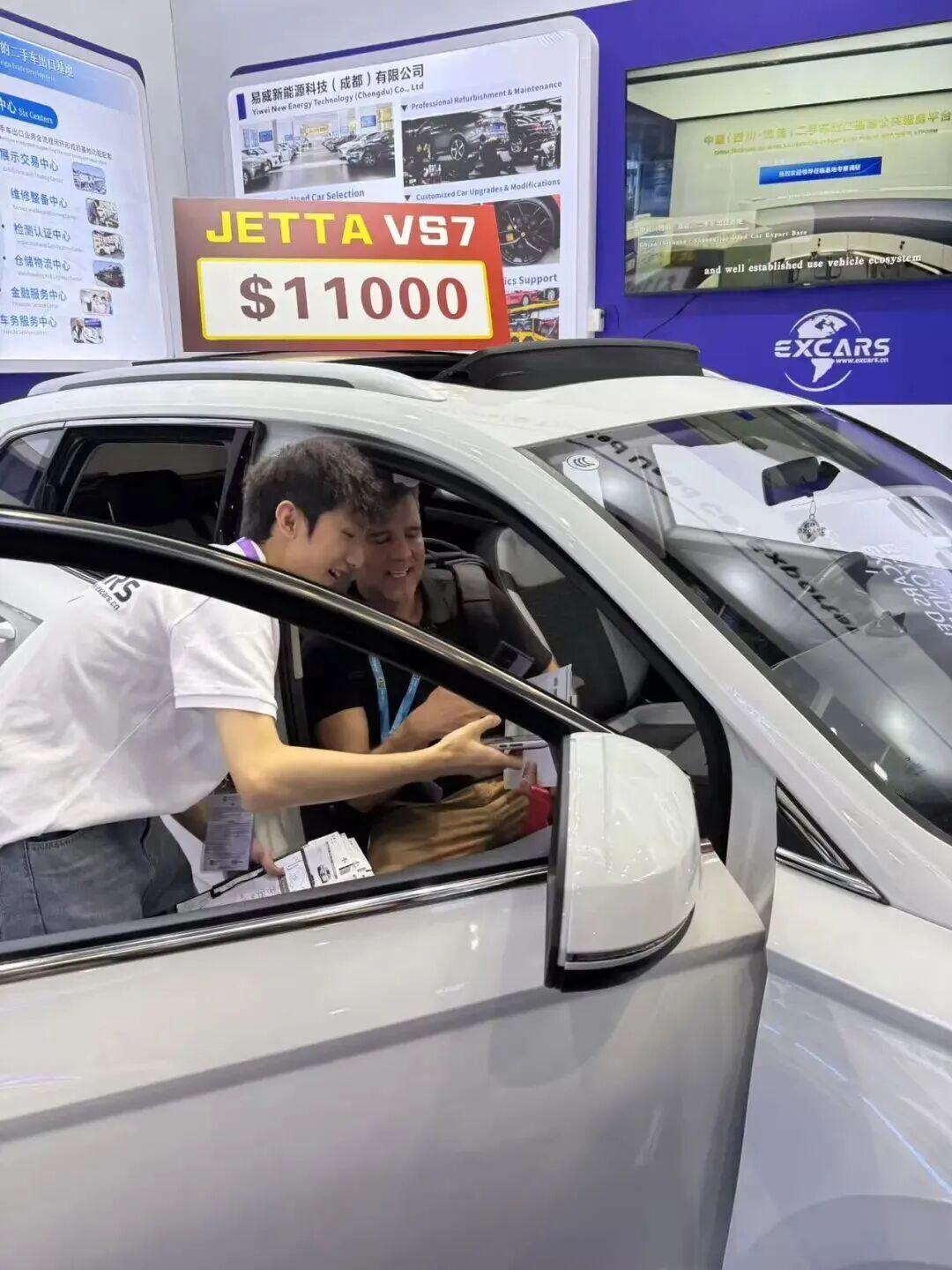 在A區(qū)8.1館,易威新能源科技(成都)有限公司總經(jīng)理王翔雨忙碌的身影格外顯眼,與以往參展不同,這次他特地帶來了成都造的捷達(dá)VS7,展臺前咨詢的客商從未間斷。“首日開展僅上午幾個小時,就有近40組客商前來咨詢,很多都表達(dá)了合作意向,收獲遠(yuǎn)超預(yù)期!”王翔雨的語氣里滿是欣喜。