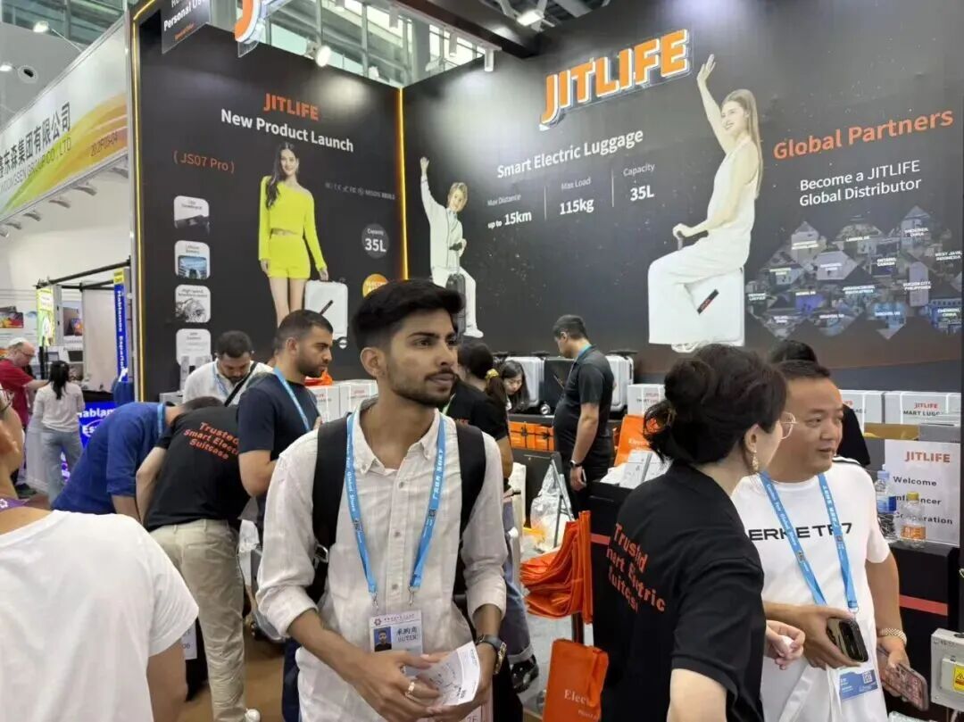 偌大的廣交會場館,讓智能電動行李箱成為“逛展神器”,圈粉無數(shù)。在成都東方智象科技有限公司展位前,就擠滿了人,外國客商絡(luò)繹不絕地來到這里,咨詢、試騎或下單電動行李箱,以至于和其公司渠道副總裁邢亞飛約好的視頻采訪,一時間找不到拍攝位置。