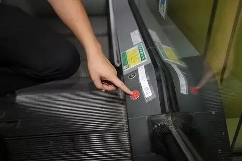 發生緊急情況,應立即呼叫人員幫忙按下位于出入口處的紅色緊急停止按鈕。如果周圍沒人,用雙手緊緊抓住扶手,把腳抬起來。