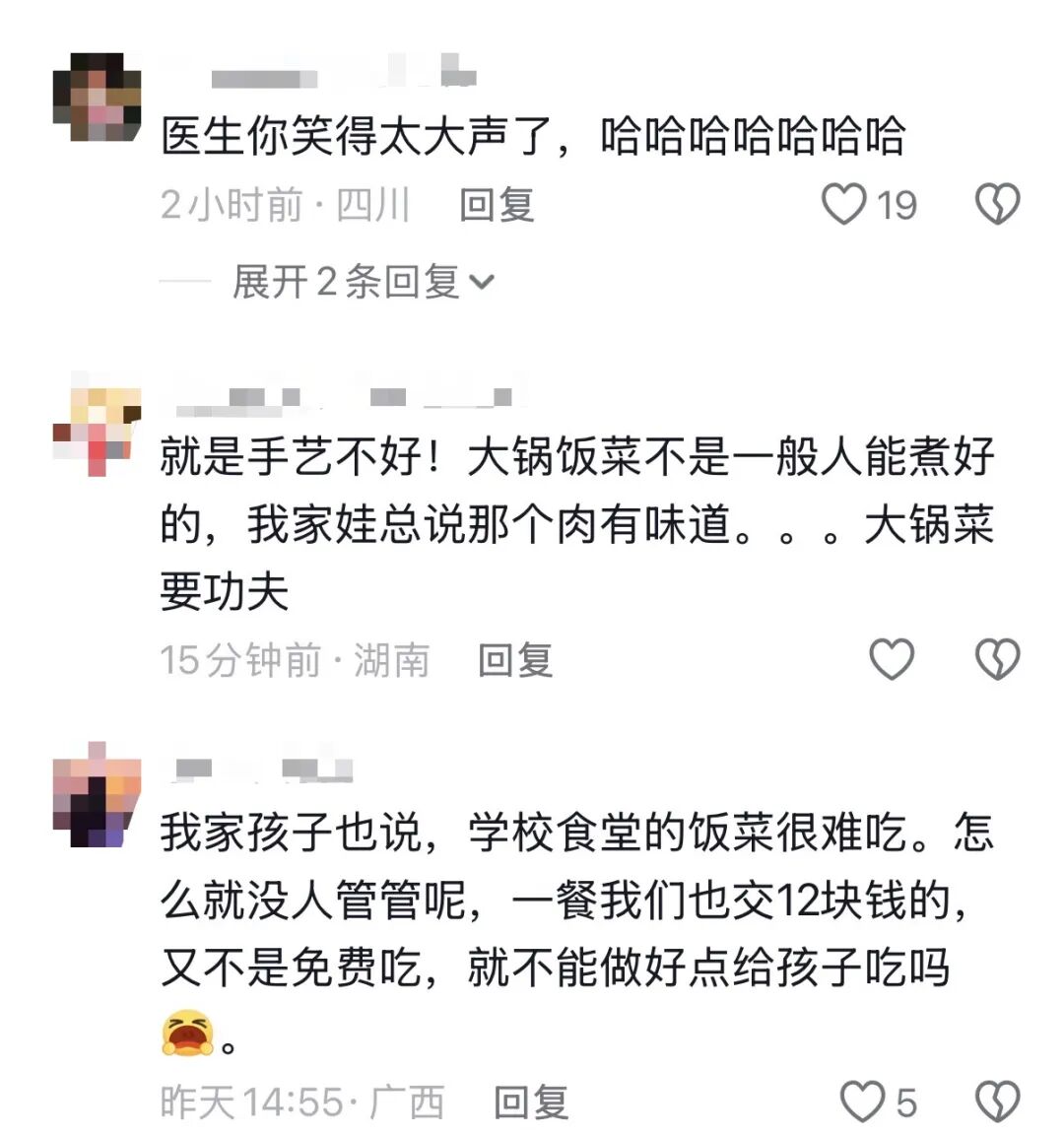 此事引起網友對食堂飯菜的討論。