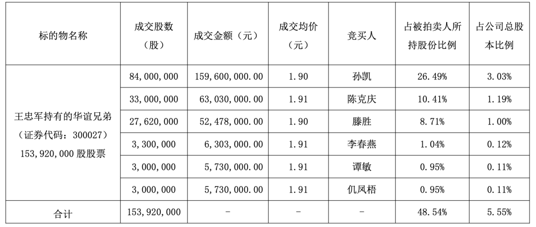 上圖截自華誼兄弟《控股股東所持股份拍賣進展公告》
