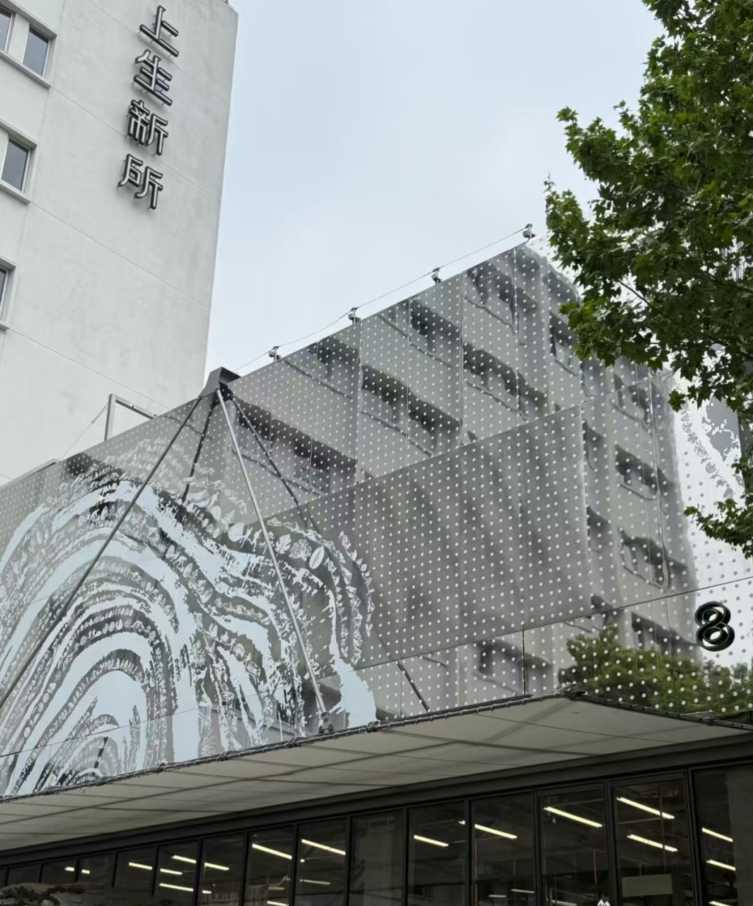 該門店位于上海市長寧區的上生·新所是一處網紅商圈,地處新華路、愚園路、衡山路至復興路三個歷史文化風貌區的中間區域。