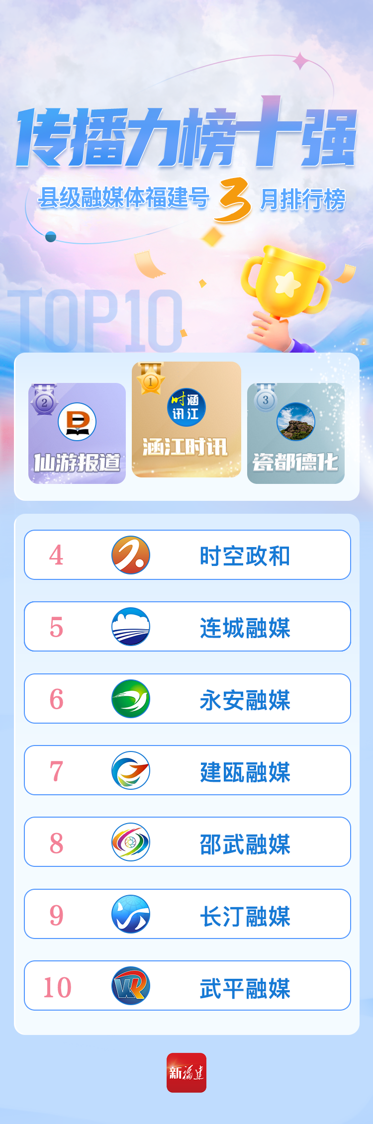 3月份指數(shù)統(tǒng)計(jì)時(shí)間為2026年3月1日至3月31日,以82個(gè)入駐縣級(jí)融媒體福建號(hào)為檢測(cè)樣本。如有疏漏,請(qǐng)聯(lián)系相關(guān)工作人員。歡迎入駐福建號(hào),參與后續(xù)評(píng)比。