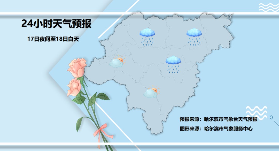 18日白天最高氣溫:大興安嶺、伊春北部10~12℃,其它地區14~16℃。