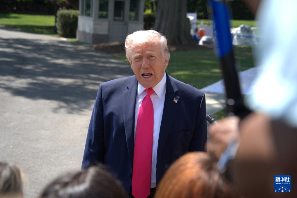 ▲4月16日,美國(guó)總統(tǒng)特朗普在華盛頓白宮南草坪接受媒體采訪。新華社發(fā)(李源清攝)