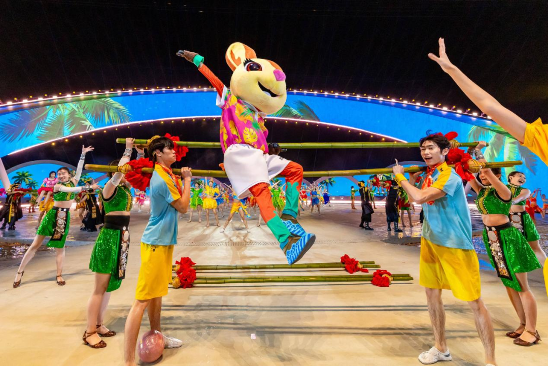 執行總導演李洋透露,開篇篇章“天海燃情”不采取傳統的“歌舞迎賓”方式,而是讓吉祥物“亞亞”化身為“主人公”,用帶有喜劇色彩的敘事方式,串聯起黎族苗族民俗文化與現代三亞的活力。