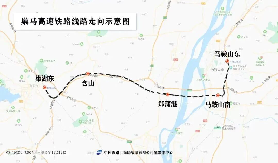 ●據上鐵集團消息,根據有關文件通知,明確新建巢湖至馬鞍山城際鐵路線路名稱為巢馬高速鐵路,簡稱“巢馬高鐵”。巢馬高鐵起于巢湖東站,向東經含山縣、和縣、鄭蒲港新區、當涂縣、經開區、雨山區、花山區后,引入馬鞍山東站,正線全長61公里,設計時速350公里。詳情>>