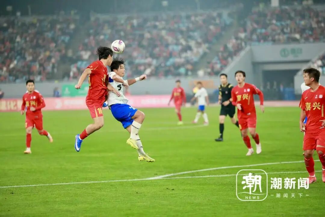 落后的嘉興開始猛攻。第28分鐘,左路傳中,邵群立凌空抽射,又是高出橫梁;第32分鐘,右路傳中,趙毅頭球偏出。一頓操作猛如虎,一看比分還是零。