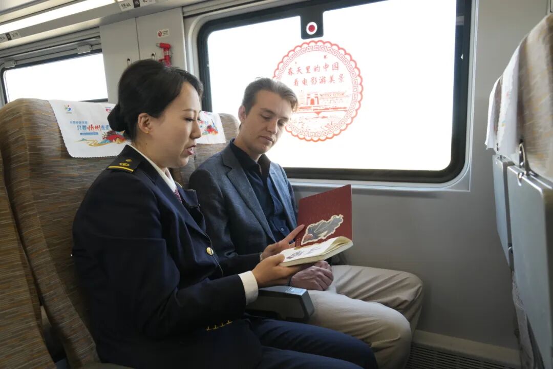 “我原本計(jì)劃前往磧口古鎮(zhèn)游玩,沒(méi)想到在高鐵上就提前開(kāi)啟了一場(chǎng)精彩的中國(guó)文化之旅,鐵路工作人員的講解十分細(xì)致用心。”