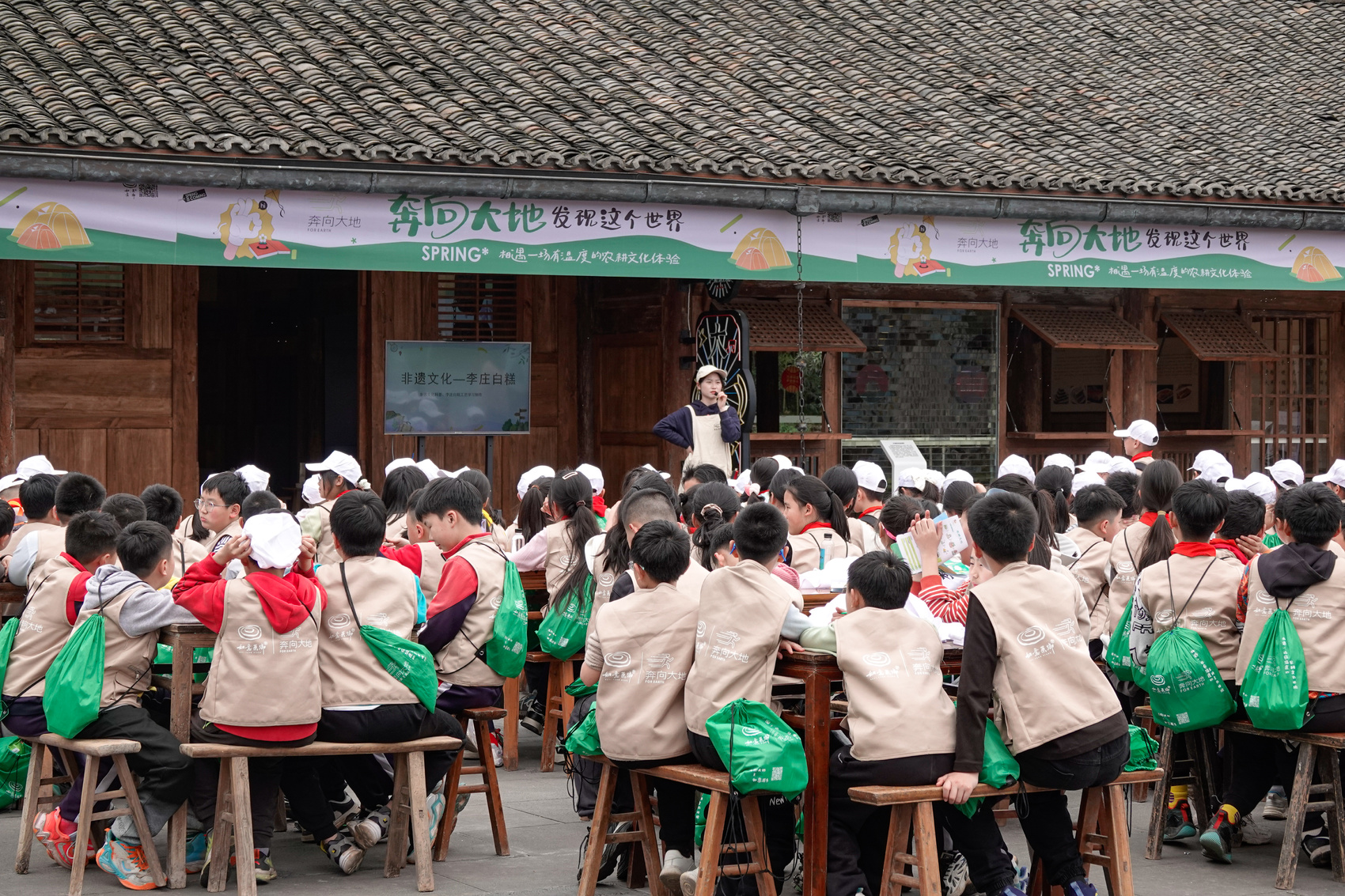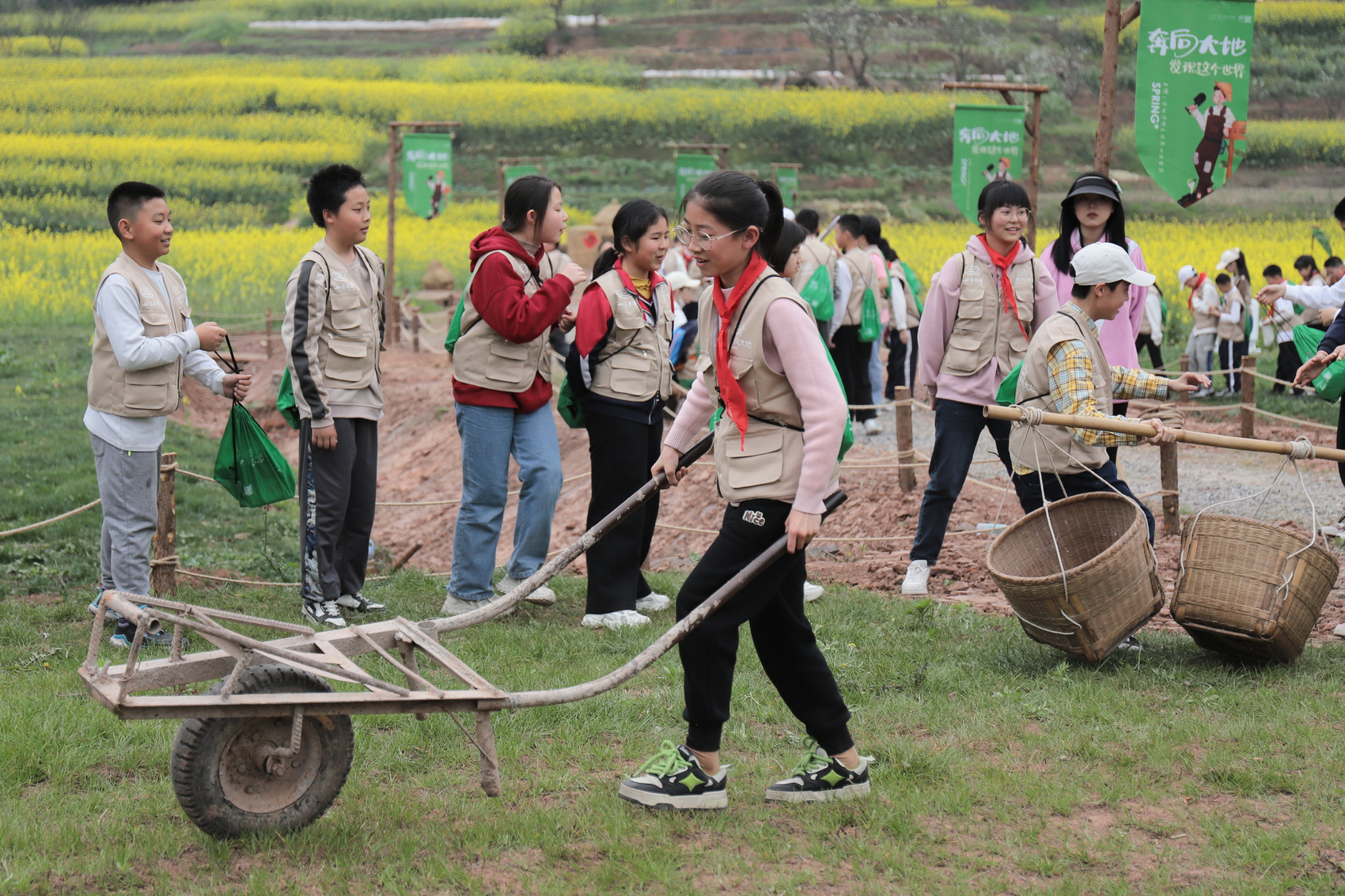 孩子們?cè)谘袑W(xué)中了解農(nóng)耕文化。