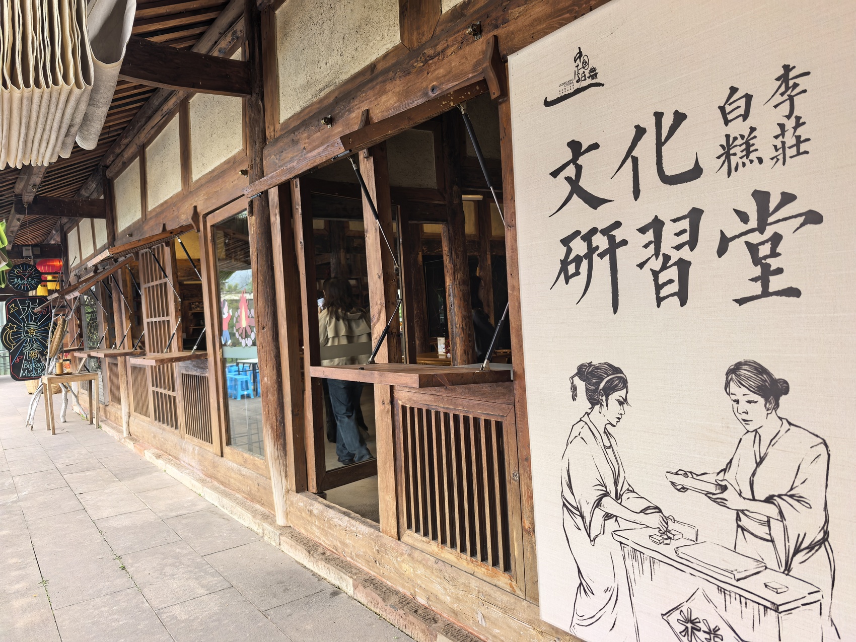 走進(jìn)大屋基咖啡店,清代老宅的夯土墻、木梁柱被完整保留,內(nèi)部卻改造為時(shí)尚休閑空間。一旁的李莊白糕文化研習(xí)堂里,游客可親手制作傳承百年的非遺美食李莊白糕。