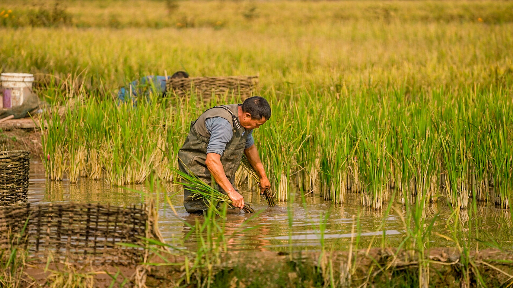 村民在水田里勞作。
