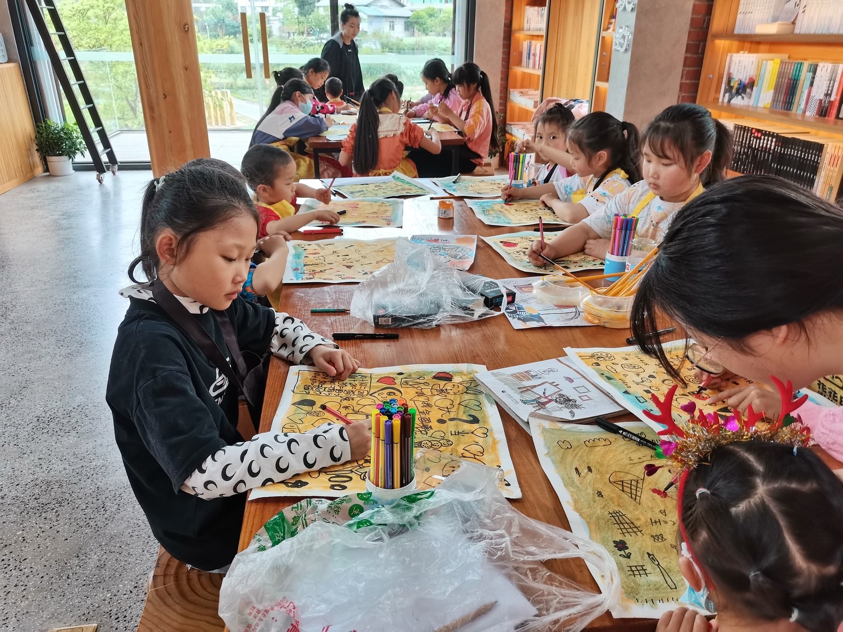 安石村鄉(xiāng)村書局開展美術(shù)繪畫活動(dòng)。