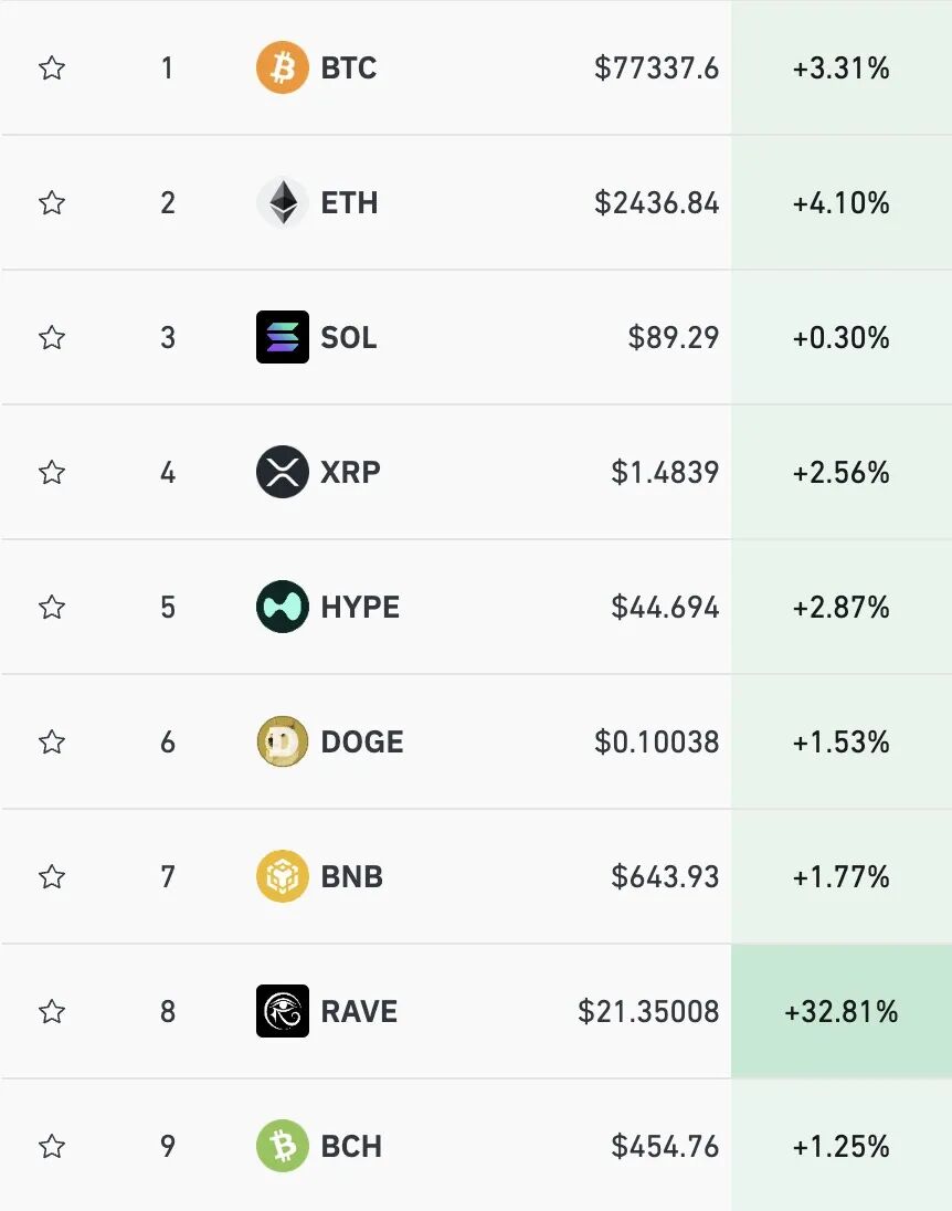 加密貨幣集體上漲。比特幣漲至77000美元上方,過去24小時內(nèi)漲3.31%;以太坊漲至2436.84美元,日內(nèi)漲超4%。最近24小時,全球共有超 16.4萬人被爆倉 ,爆倉總金額為7.49億美元。
