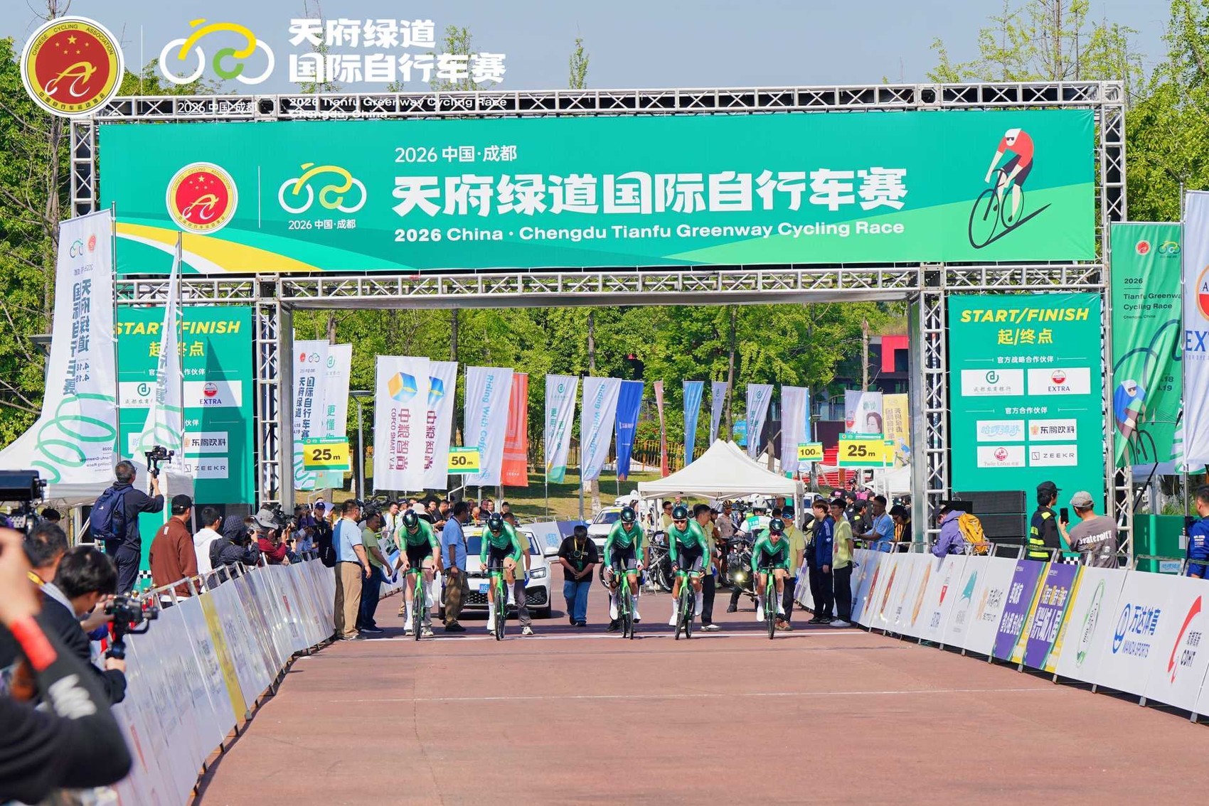 啟動儀式舉辦地旁邊,2026中國·成都天府綠道國際自行車賽正在火熱進行。圖據主辦方