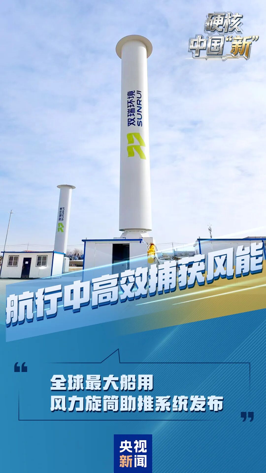 全球最大船用風力旋筒助推系統直徑5米、高35米,重量達到150噸。該系統可在航行中高效捕獲風能,為船舶提供額外推力,平均可為大型遠洋船舶節省5%~25%的燃油消耗,并相應降低碳排放。